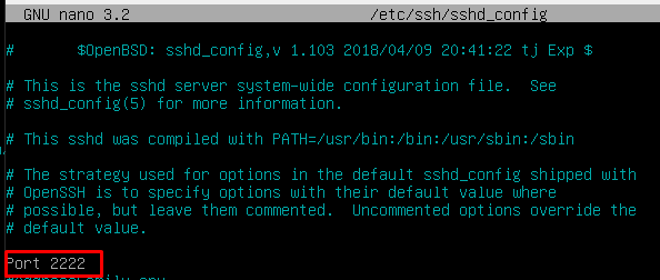 Con esto ya no tendríamos el acceso activado por contraseña, solo estaría activado el de claves públicas, que viene activado por defecto. Ahora lo último que haremos será cambiar el Puerto por defecto (22) a 2222: