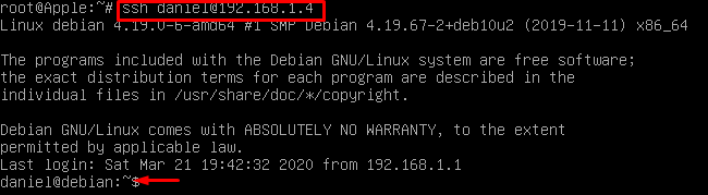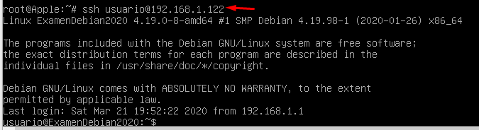 Establecemos la conexión SSH con el cliente: