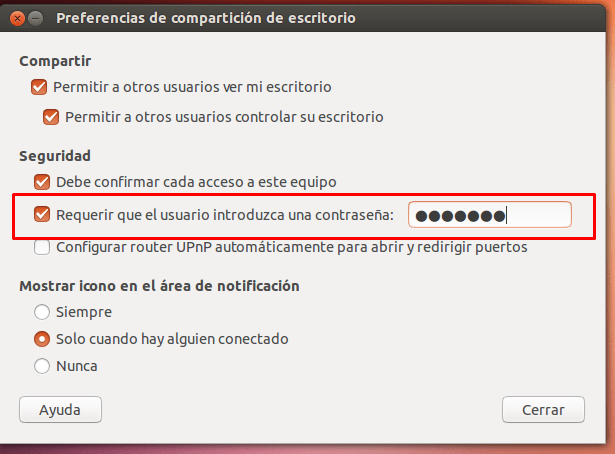 Simplemente establecemos una contraseña en la máquina Ubuntu para que cuando se conecten tengan que introducir dicha contraseña: