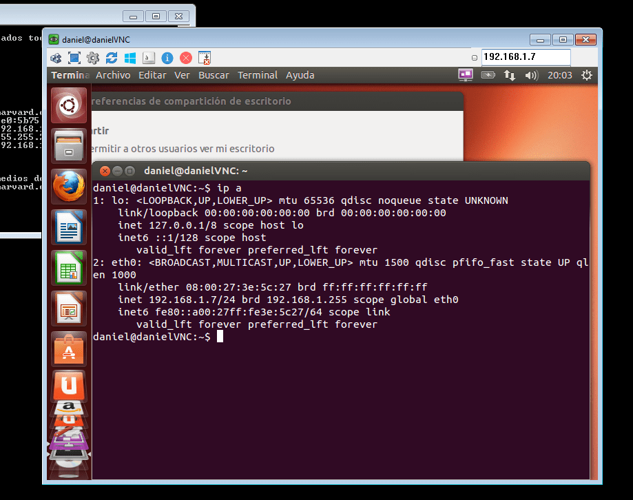 Ya estaríamos compartiendo el escritorio mediante VNC. Ahora haremos lo mismo pero desde Windows: