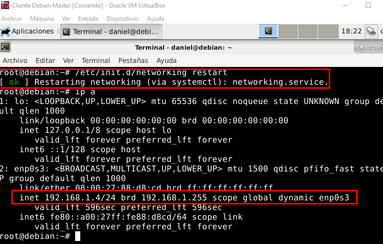Reiniciamos el servicio de red con:
