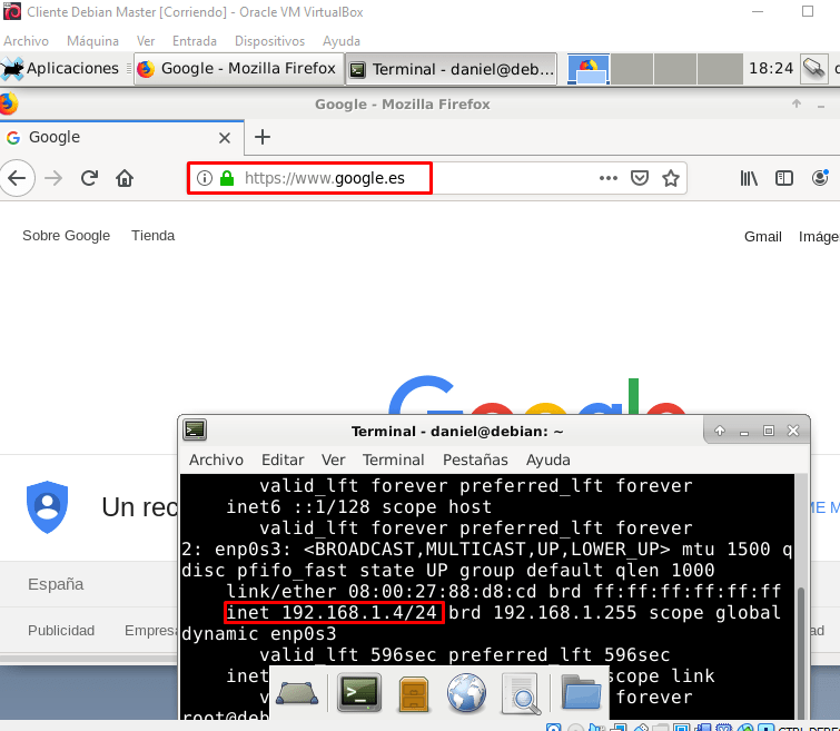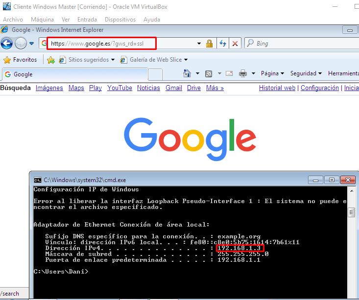 Ahora vamos a comprobar que nuestro cliente Windows sale a internet: