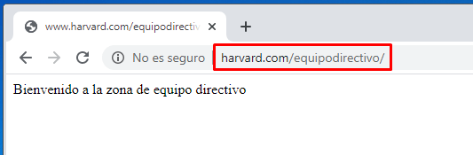 Nos ha entrado perfectamente porque ese usuario si está registrado. Ahora probaremos a entrar en «/equipodirectivo»: