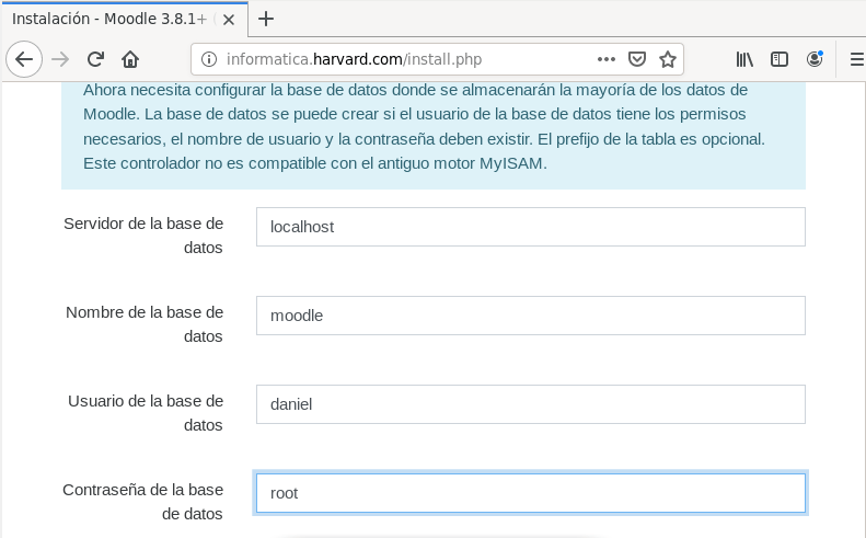 Una vez instalado tendremos que comprobar que funciona y crear una base de datos, la cual utilizaremos en nuestra «moodle»: