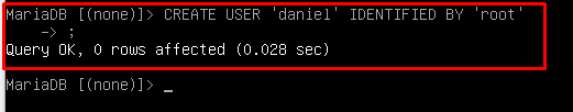 Si nos sale como la captura anterior, significará que se ha realizado con éxito la creación. Ahora necesitamos crear un usuario: